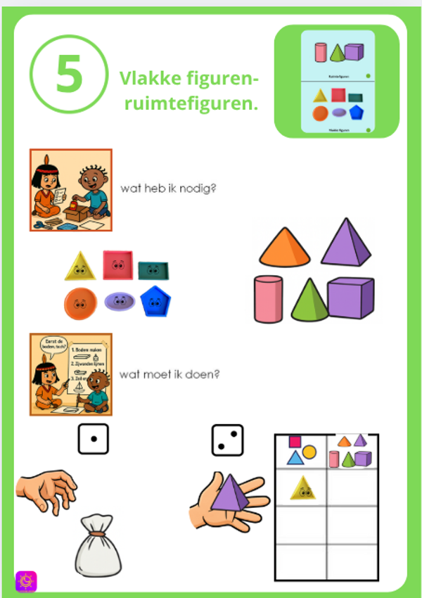 De activiteiten zijn opgebouwd om kleuters te laten experimenteren, observeren en nadenken over hoe vormen en structuren werken in hun omgeving. Dit alles gebeurt in een rijke speelleercontext die uitnodigt tot ontdekken, bouwen en herhalen.