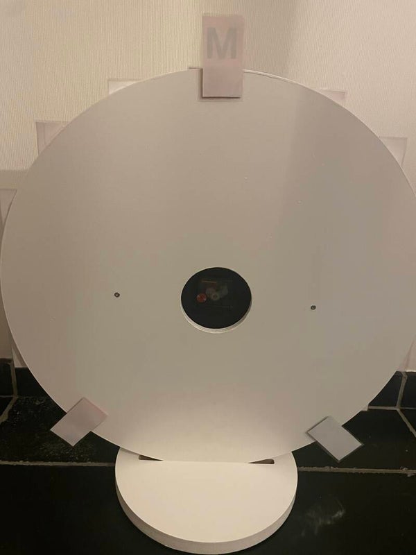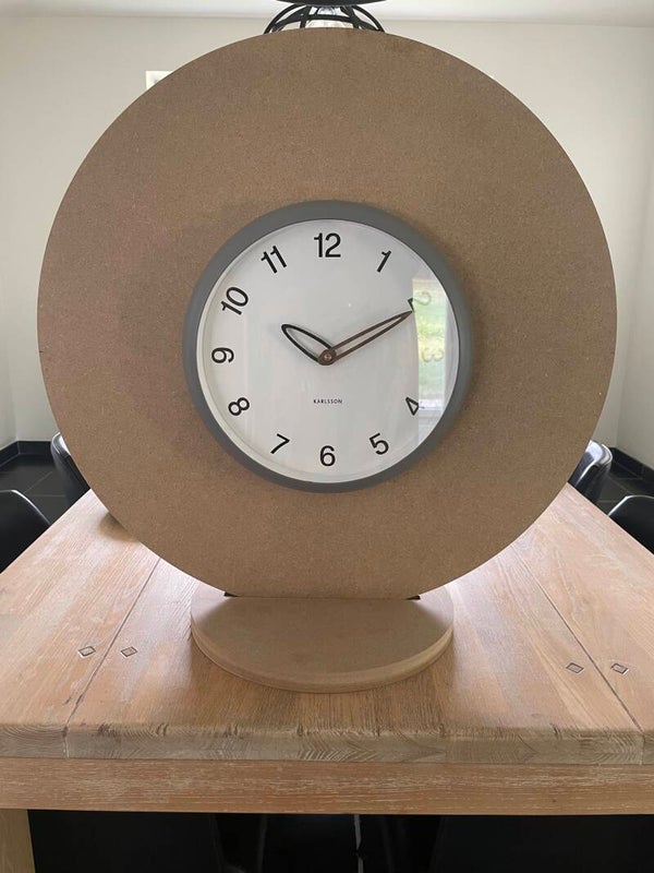 Afmeting klok: doorsnede 30 cm met een rand van 15 cm hout.