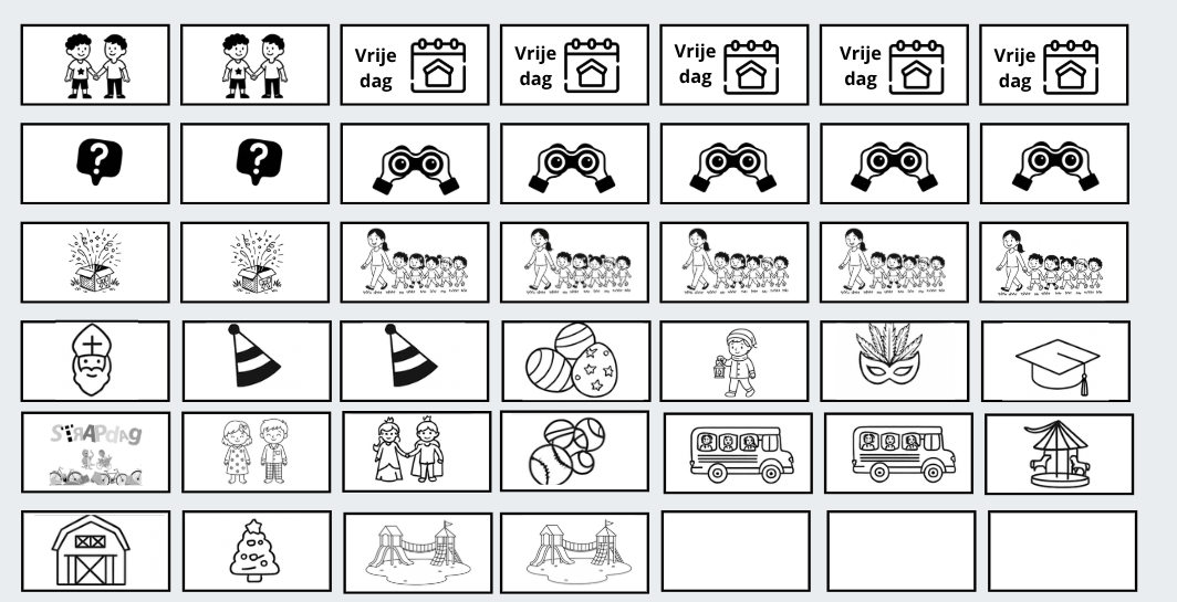 Vul de kalender in met verjaardagen, thema’s, uitstapjes en bijzondere momenten. Elke dag mogen de kleuters een kruisje zetten: zo zien ze de maand vorderen en leren ze stil te staan bij wat voorbij is en wat nog komt.