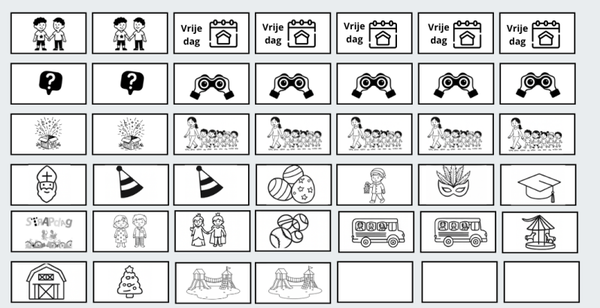 Dankzij de bijgeleverde pictogrammen kun je ook vooruitblikken op wat er nog komt, zoals uitstapjes, activiteiten of veranderingen in het thema. Ideaal om kleuters houvast te geven én hen nieuwsgierig te maken naar de komende dagen.
