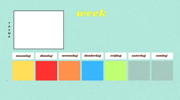 In het witte vakje van elke week kun je het lopende thema visualiseren.