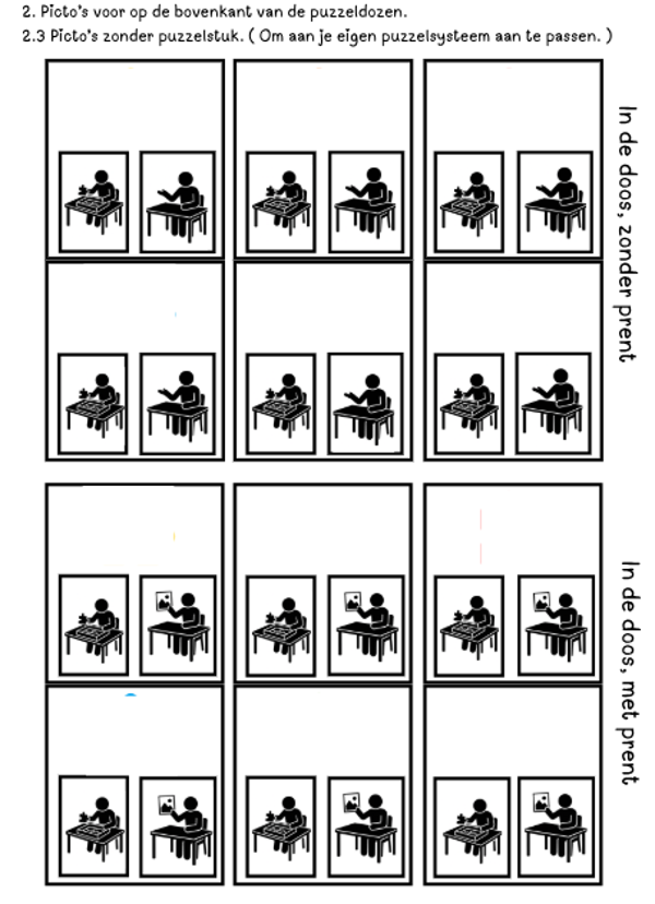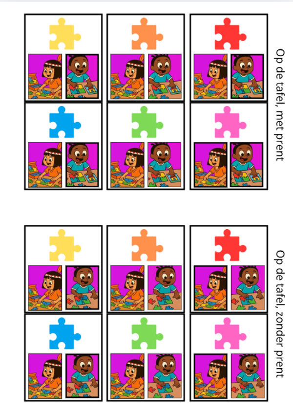 Elke kleuter krijgt een eigen puzzelkaart met bordspel én opdrachtblad. Puzzels en ruimtelijke spelletjes zijn ingedeeld op kleur en moeilijkheid en kunnen eenvoudig klaargelegd worden dankzij een slim label- en symboolsysteem.