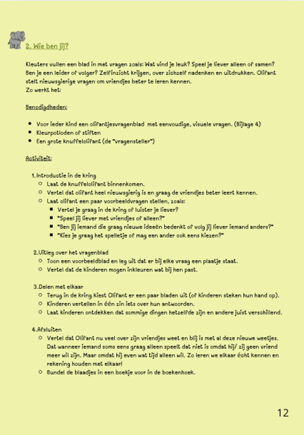 In 10 speelse activiteiten begeleid je jouw kleuters stap voor stap in het leren omgaan met elkaar. Ze ontdekken dat ze zichzelf mogen zijn, dat iedereen belangrijk is in de groep en dat samenwerken leuker is dan alleen.