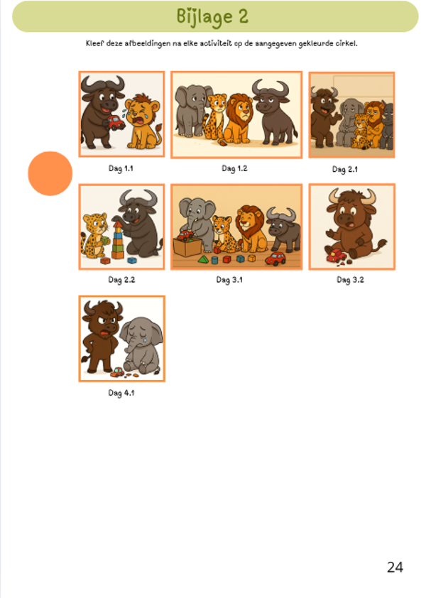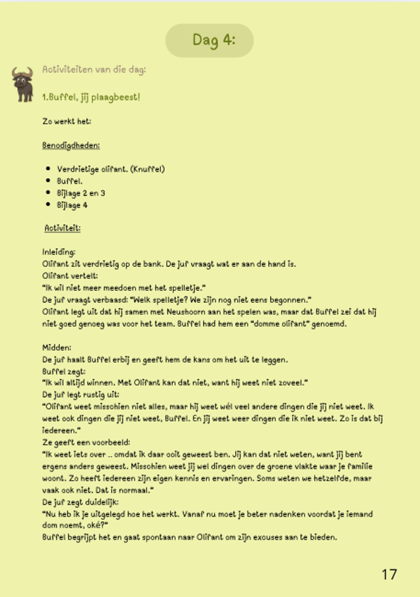In deze module helpt Buffel de kleuters om positief gedrag te versterken, verantwoordelijkheid te nemen en samen een fijne klasomgeving te creëren. De verhalen, activiteiten en kringmomenten maken de afspraken niet belerend, maar speels, herkenbaar en visueel sterk.