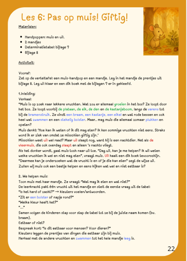 * Rode draad (verhaal) doorheen het thema die de nieuwe kennis op een speelse manier aanbrengt.