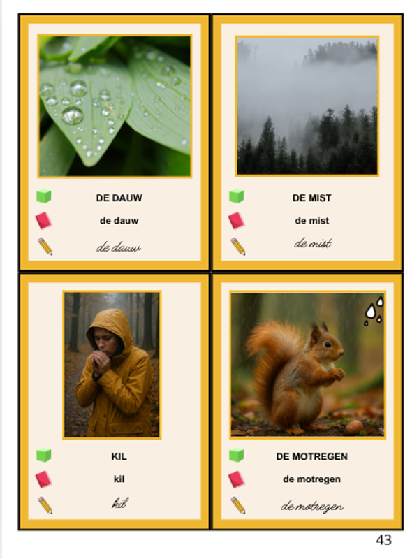 * Nieuwe woordenschat die verweven zit doorheen de activiteiten en waarbij jij als leerkracht kiest welke woorden je in de verf zet.