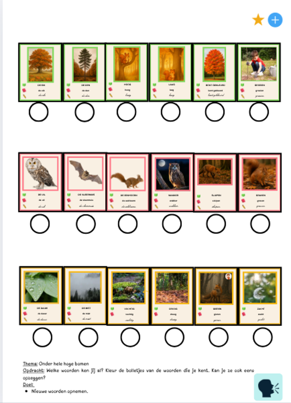 - 1 evaluatieopdracht: nieuwe woordenschat.