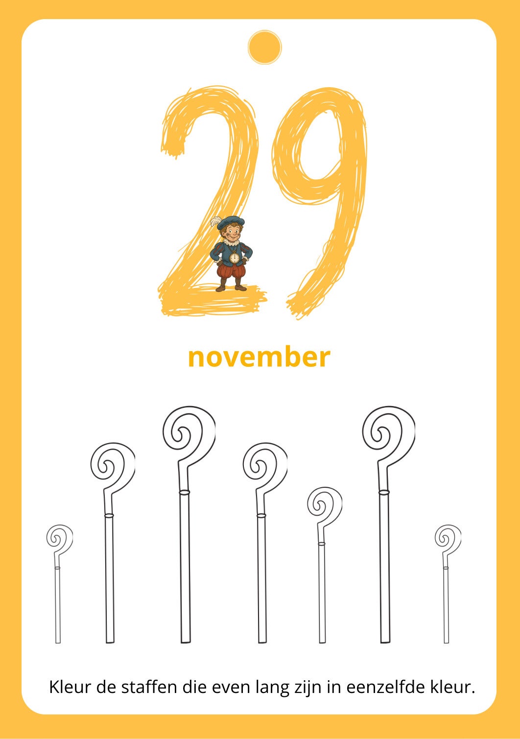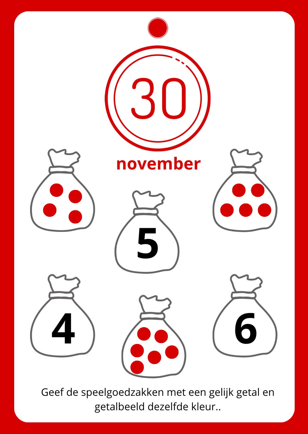 Deze kalender omvat 13 taakjes. Elke dag kan een kleuter een taakje afwerken. Zo tel je op een leuke en speelse manier af naar de dag dat Sinterklaas komt!